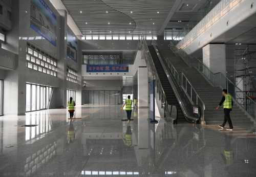 11月8日下午,記者再次來到鄭阜高鐵周口東站,看到一片熱火朝天的施工景象。伴隨著高鐵即將開通,工人緊張施工,施工進度一天一個樣,確保如期交付使用。圖一落客平臺進入鋪油階段。圖二站前廣場緊張施工中。圖三候車大廳進入精細(xì)化保潔。