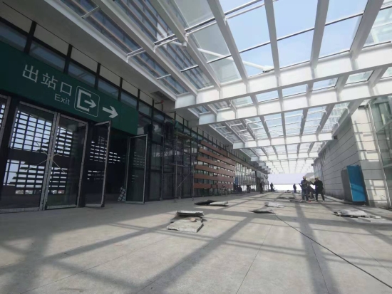 經(jīng)過檢票機(jī)安檢通道,乘電梯或步梯通往站臺。該站站場設(shè)2臺4條(含正線2條),設(shè)基本站臺、側(cè)式站臺各1座,站臺最高聚集人數(shù)為600人。