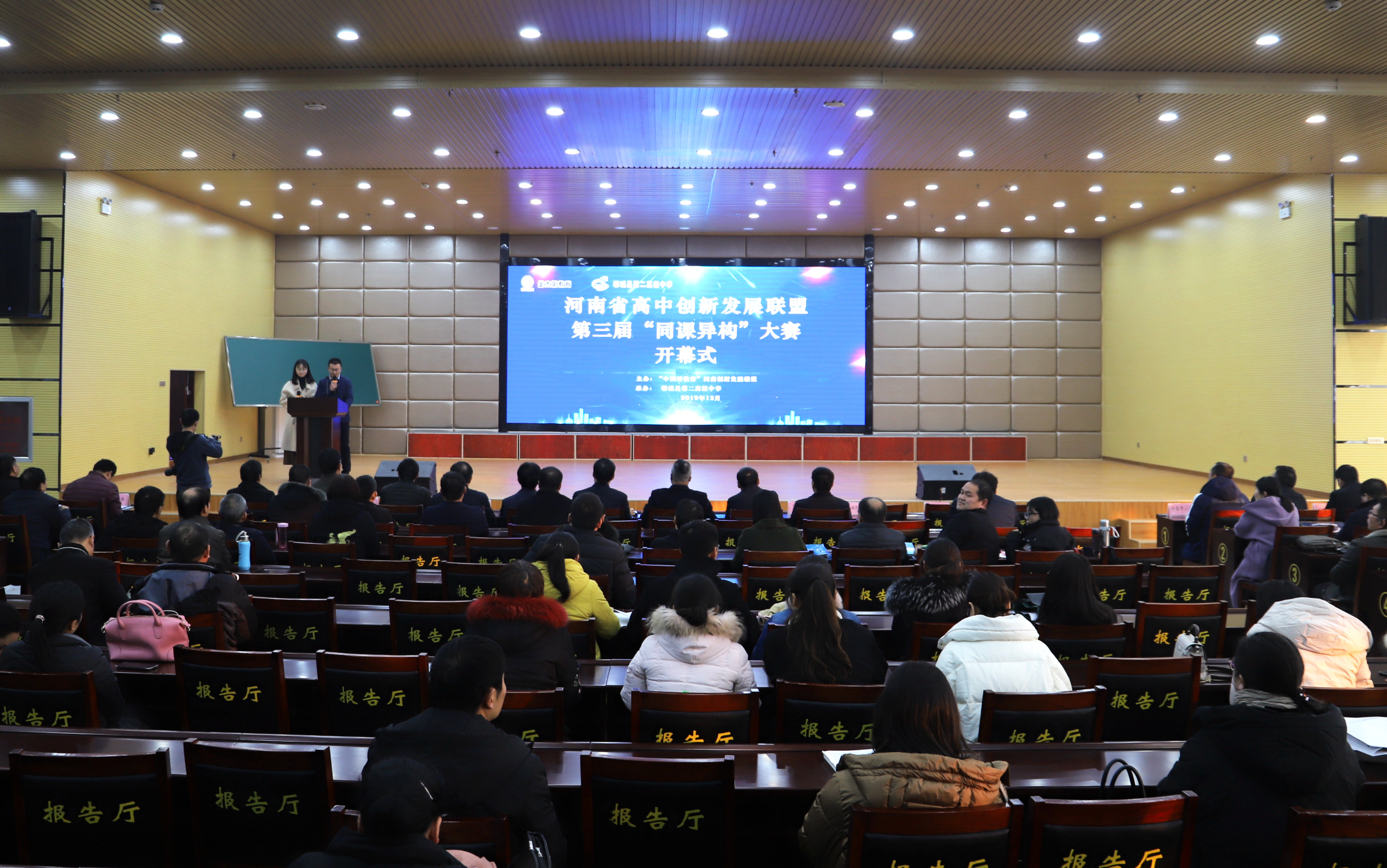 12月7日,由河南省高中創(chuàng)新發(fā)展聯(lián)盟主辦、鄲城二高承辦的全省第三屆“同課異構(gòu)”大賽開幕。鄲城縣教體局黨組書記、局長劉現(xiàn)營出席開幕式并致詞。來自全省15個(gè)縣市區(qū)的高中代表隊(duì)將在3天賽期內(nèi)各展風(fēng)采,共通思想、共享智慧、共融發(fā)展。