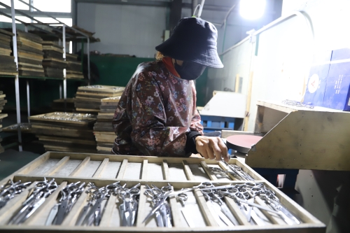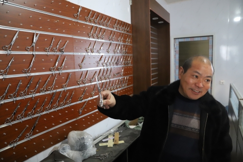 “我也是從小就外出,一直在江蘇蘇州發(fā)展,做刀剪十幾年了?,F(xiàn)在家鄉(xiāng)環(huán)境好,回來發(fā)展比在南方還有前途?!苯衲?9歲的陳政治老家是虎崗鄉(xiāng)陳莊村。被虎崗鄉(xiāng)黨委政府的誠意所感動,他很樂意回鄉(xiāng)發(fā)展,因為房租價格低、務工人員穩(wěn)定,營商環(huán)境又好,所以他帶著自己的外甥楊亞杰和技術(shù)團隊回到老家鄲城,還能助力家鄉(xiāng)經(jīng)濟發(fā)展。陳政治說,他的廠子所生產(chǎn)的東升、jack、亞寶等品牌刀剪全部銷往全國高檔理發(fā)店,產(chǎn)品供不應求。像這樣的高檔刀剪生產(chǎn)廠家,在中原地帶極少。剛投產(chǎn)幾個月,他已經(jīng)接到了來自韓國、日本等地的訂單。