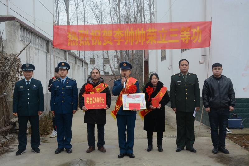 一人參軍,全家光榮;一人立功,全家榮耀。2020年1月2日,沈丘縣洪山鎮(zhèn)廟山李村聽說黃繼光生前部隊要來送喜報,榮立三等功的李帥帥一家特地選擇在村口迎接這份榮譽(yù)。接過大紅喜報,李帥帥的母親喜極而泣:活了幾十年了,送兒子當(dāng)兵也有12余年,今天是我對“軍屬光榮”四個字感觸最深的一次,也是最光榮的一天,沾了兒子的光了……