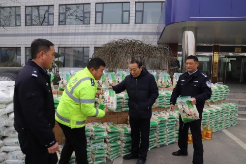 王超一行首先來到了府尚茗郡項(xiàng)目建設(shè)工地,詳細(xì)詢問建筑工人的工作環(huán)境、工資待遇,以及生活保障等情況,并叮囑工人們,天氣寒冷,室外作業(yè)時(shí)要時(shí)刻注意安全和保暖,防止摔傷和凍傷。為環(huán)衛(wèi)大隊(duì)和交警大隊(duì)送去了米、面、油等慰問品,對他們付出的辛勤勞動表示感謝。