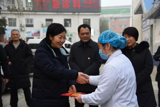 鄲城縣第一醫(yī)療健康服務(wù)集團作為河南省新型肺炎救治定點醫(yī)院時刻牽動著縣委縣政府領(lǐng)導的心。1月23日,縣委書記羅文閣、縣政府縣長李全林、縣政府副縣長肖煒來到縣醫(yī)院親切慰問一線醫(yī)護人員,并給一線工作人員帶去春節(jié)祝福。