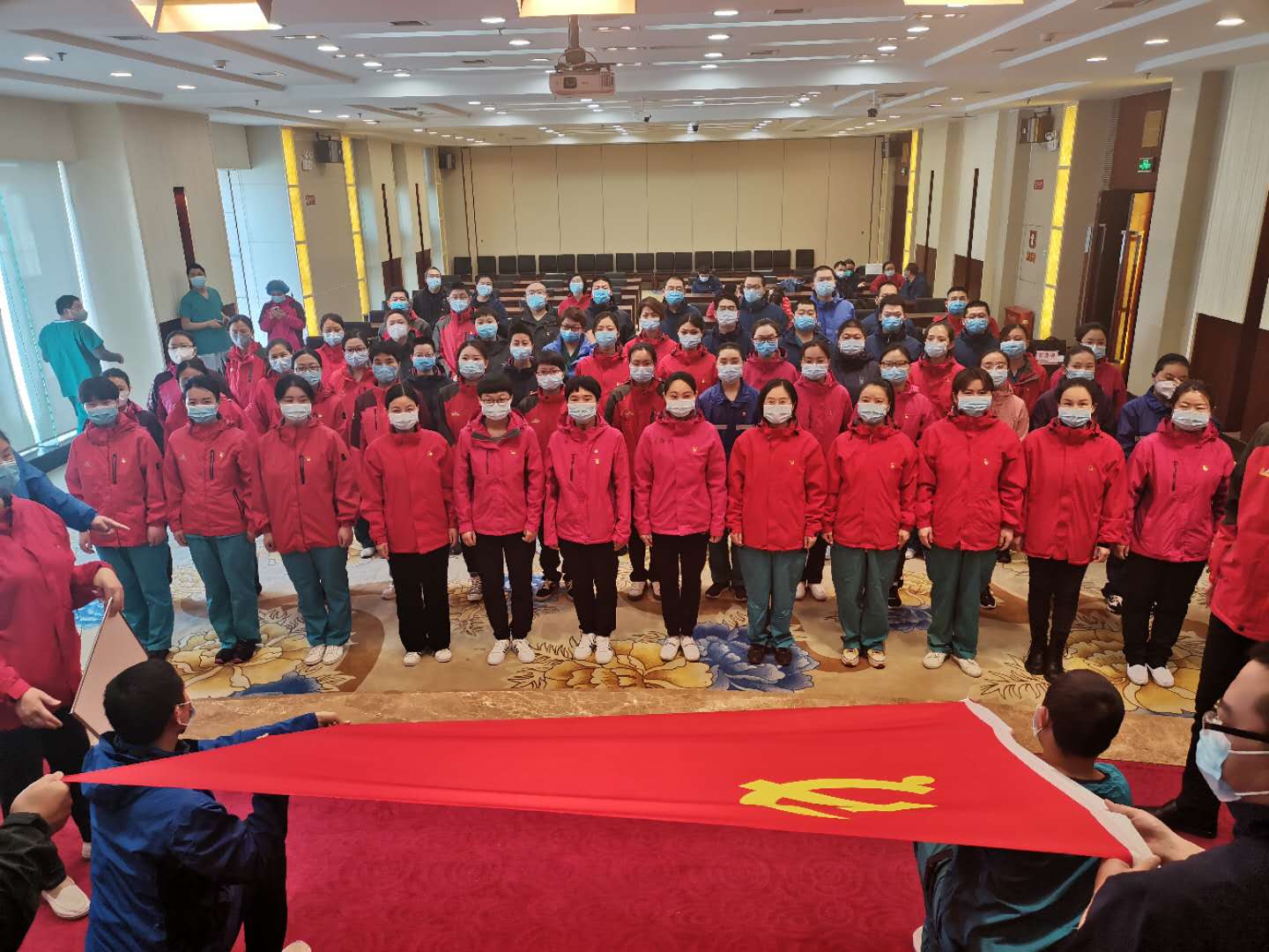 3月19日,周口援鄂醫(yī)療隊周口市中心醫(yī)院祁文麗、徐貴琴、解玉東、王亞麗、王玉才、王冰清6名隊員,站在鮮紅的黨旗面前莊嚴宣誓志愿加入中國共產(chǎn)黨。