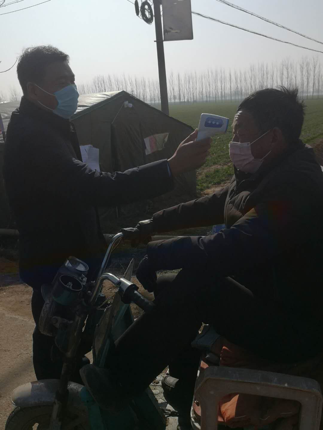 由于物資未曾到位,檢測點(diǎn)僅簡單搭了一頂四面透風(fēng)的帳篷,紀(jì)占東跟其他工作人員一起在寒風(fēng)中檢查登記出入人員、測量體溫,天氣寒冷,吃飯也只能用饅頭、泡面對付,但是內(nèi)心是火熱的。紀(jì)占東說在防控工作中,絕大部分群眾理解和支持的,有群眾在家里燒好開水給值班人員送,還有的群眾送來暖手寶、熱氣騰騰的飯菜......這些都是他工作的動(dòng)力和源泉。