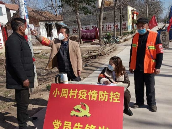 在虎崗鄉(xiāng)小周行政村路口的疫情防控黨員先鋒崗,3名入黨積極分子自發(fā)進(jìn)行輪流值守,積極向群眾宣傳疫情防控知識(shí),勸散聚集人員?!霸谝咔榉揽毓ぷ髦?,我們村及時(shí)響應(yīng),設(shè)立了黨員先鋒崗,組織黨員和入黨積極分子參與卡點(diǎn)執(zhí)勤、疫情知識(shí)宣傳、摸底排查,建立起聯(lián)防聯(lián)控、群防群治的工作體系?!编惓强h農(nóng)科所駐該村第一書(shū)記謝付振說(shuō)。