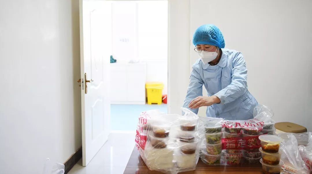 又到了打飯的時(shí)間,鄲城縣人民醫(yī)院新冠肺炎定點(diǎn)治療隔離病區(qū)護(hù)士長(zhǎng)莊坤掰著手指一個(gè)一個(gè)向餐廳介紹病人的情況,用“了如指掌”來(lái)形容最恰當(dāng)不過(guò)。一邊說(shuō)話,她一邊熟練地將幾筐飯菜分類(lèi)打包,每一份都用食品袋包好,哪是確診病人的,哪是留觀病人的,每一份上面都寫(xiě)上名字,再由護(hù)士分別送去。