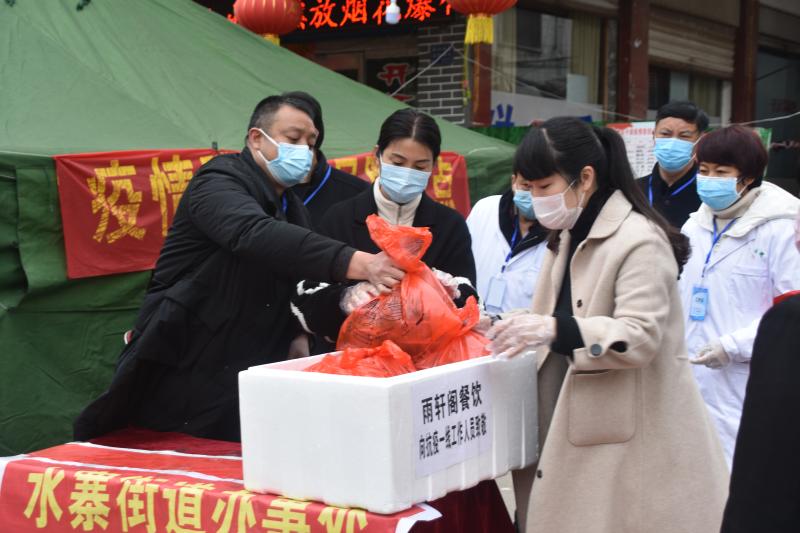 “今天是米飯、魚香肉絲,還有紫菜蛋花湯和水果。趕快吃點(diǎn)暖暖身子!”上午11時(shí)30分,卡點(diǎn)來(lái)了幾位“不速之客”,幾個(gè)年輕人從車上抱下幾箱盒飯菜。記者上前打探究竟,原來(lái)是該市雨軒閣飯店經(jīng)理崔雪花等人為一線防控人員送愛(ài)心盒飯來(lái)了。