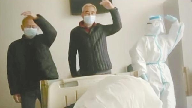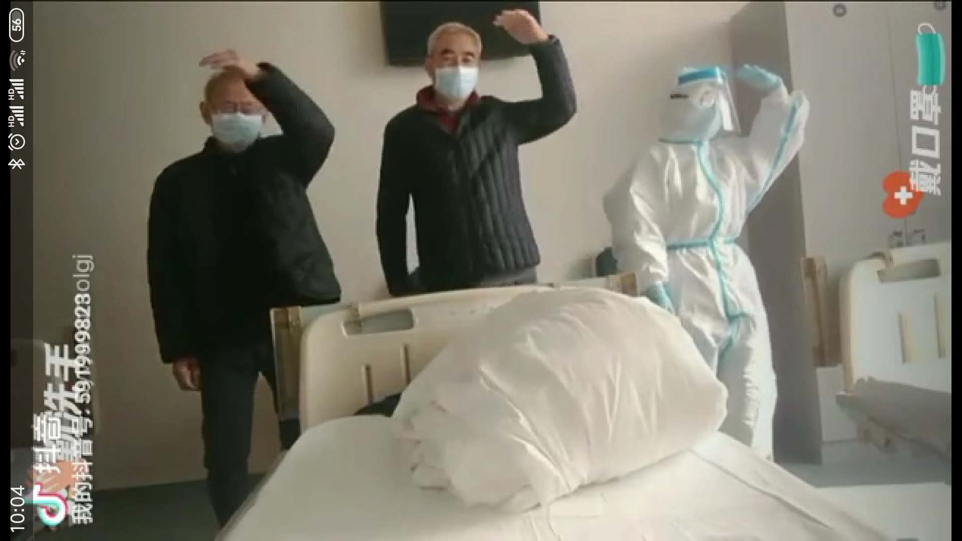 3月6日,周口援鄂醫(yī)療隊(duì)的微信群因?yàn)橐欢味兑粢曨l而變得歡樂(lè)。視頻中,兩位老人和一位穿著防護(hù)服的護(hù)士,正踩著“小黃鴨”的魔性節(jié)奏在病床前尬舞……