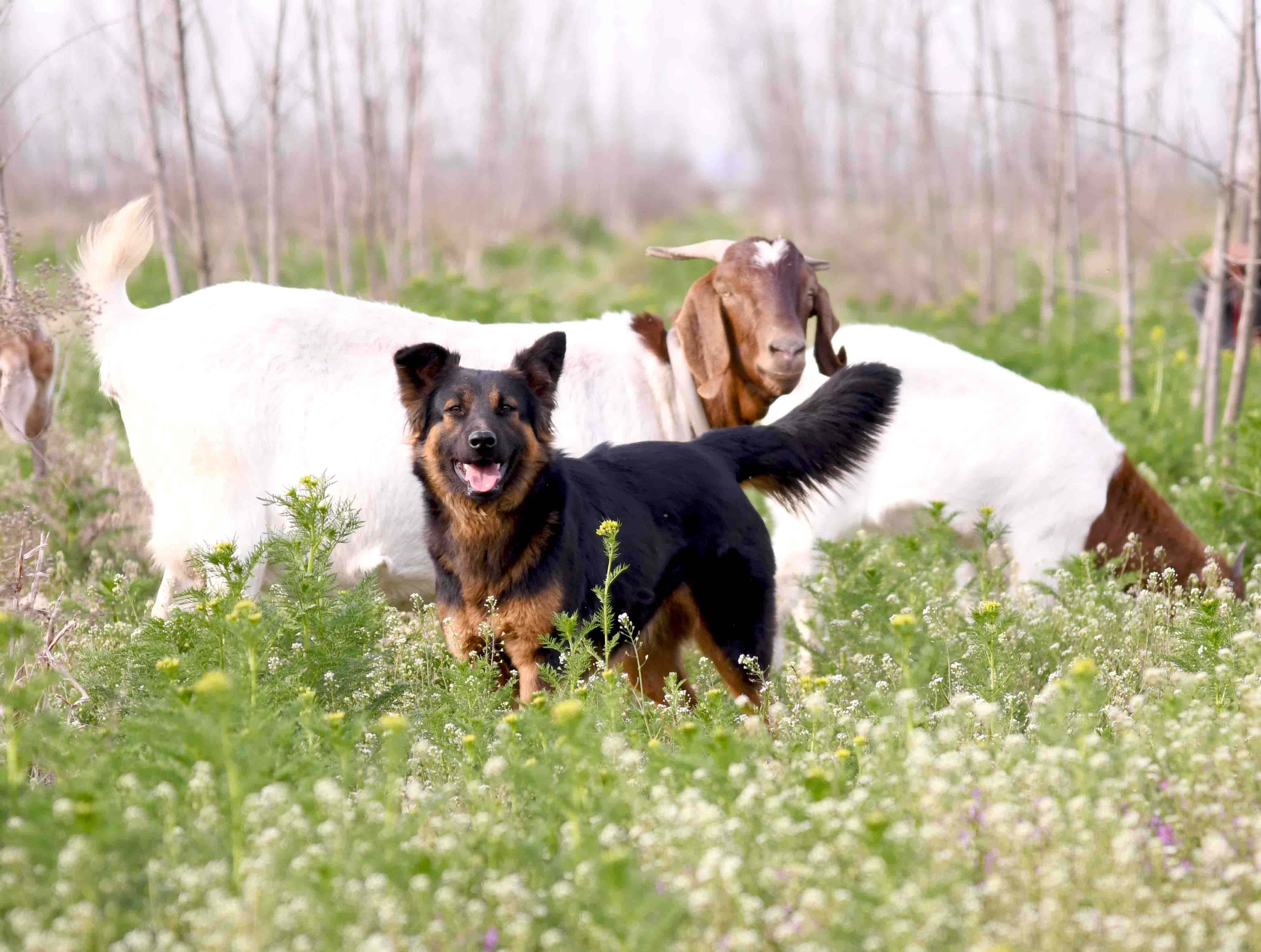 牧羊狗忠實地為主人看護羊群
