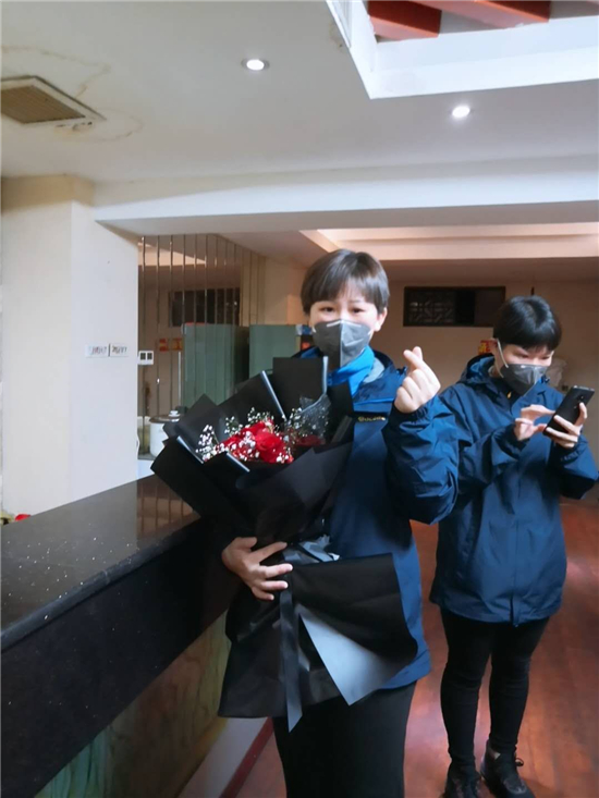 隊伍集合完畢,接下來的一幕令許聽聽始料未及。來自當?shù)厣鐓^(qū)的工作人員,手捧蛋糕、鮮花,唱著生日歌,來到許聽聽面前,向她致以生日祝福。特殊時期,身處抗疫一線,忙于照顧病人,許聽聽此前對自己的23歲生日沒有任何憧憬,她告訴記者,其實她當天沒想起來是她的生日,面對突如其來的生日祝福,許聽聽說:“當時的心情既激動又感動?!薄?/p>