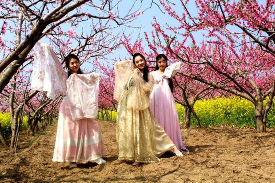 陽(yáng)春三月,西華萬(wàn)畝桃園花開正艷,朵朵桃花,燦若云霞。3月24日,在黃橋萬(wàn)畝桃園一片桃花叢中,七位貌美如花的美女,宛若桃花仙子,翩翩起舞。一旁的幾個(gè)靚女帥男,不時(shí)按下快門,記錄下這美好的瞬間。