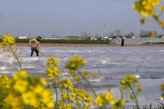 3月24日,商水縣郝崗鎮(zhèn)郝內(nèi)村農(nóng)民在扶貧示范田間忙著春耕生產(chǎn)。
