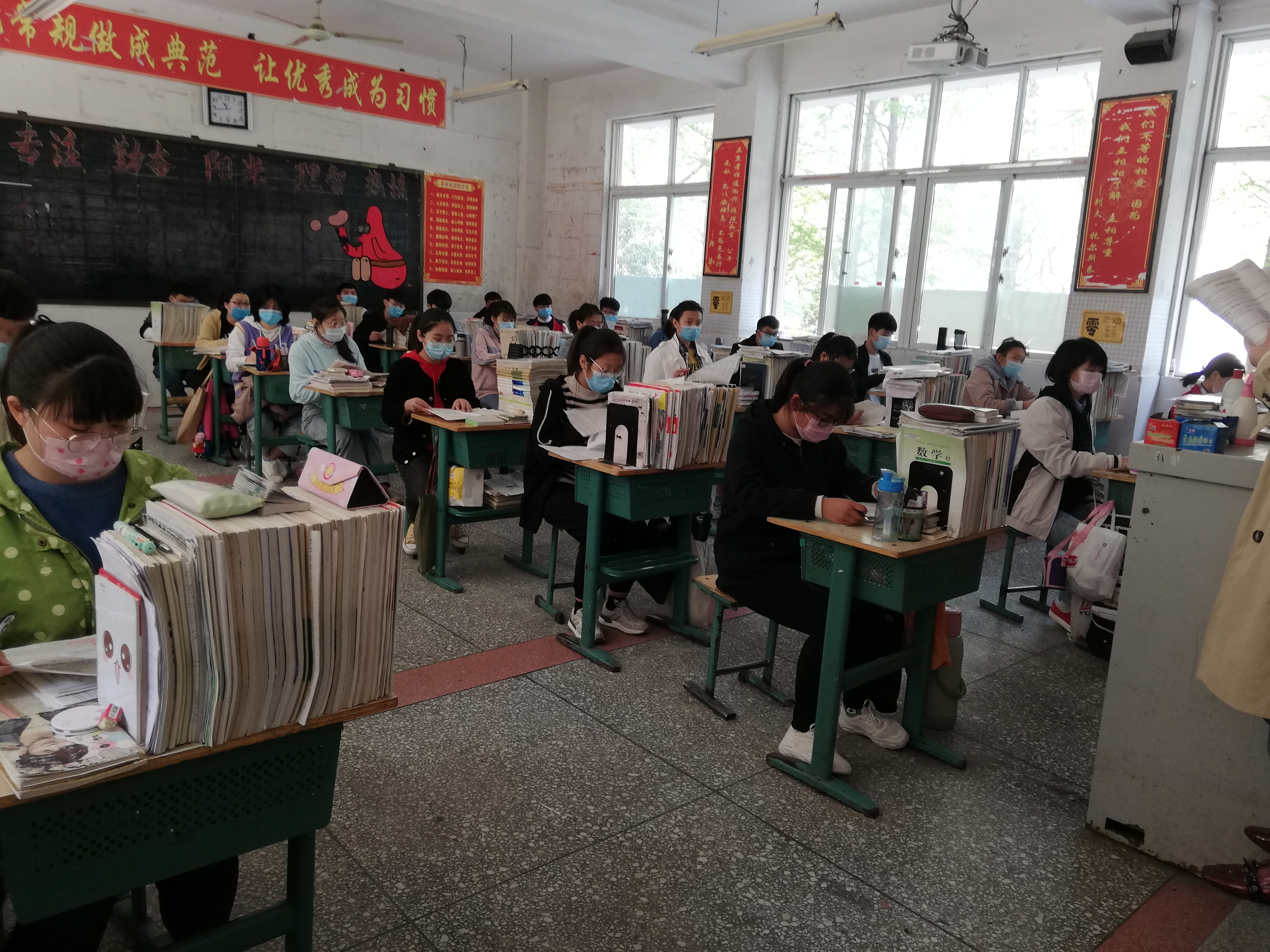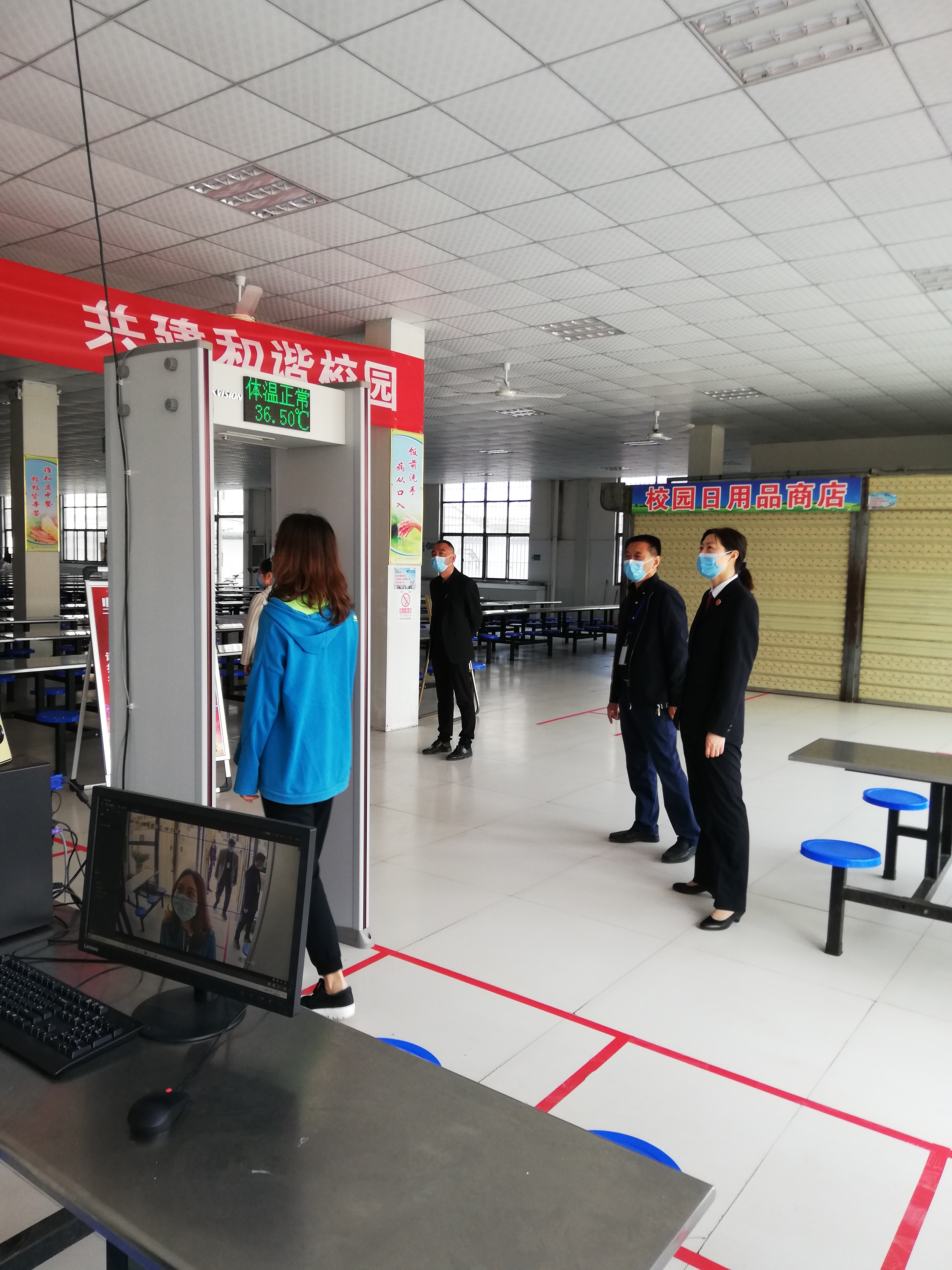 督導(dǎo)組一行嚴(yán)格按照河南省和周口市高三年級(jí)開(kāi)學(xué)條件的具體標(biāo)準(zhǔn)對(duì)教室、餐廳、宿舍等人員易聚集場(chǎng)所進(jìn)行了檢查,了解到各所學(xué)校都謹(jǐn)遵要求部署防控措施:學(xué)生教室由原來(lái)的大班分為30人為單位的小班,拉大課桌之間的距離;宿舍由8人間改為4人間的小寢室,管理人員定時(shí)消毒,學(xué)生需按地標(biāo)線排隊(duì)出入宿舍;食堂分A、B組單人、單桌、單向錯(cuò)峰就餐,餐具統(tǒng)一高溫消毒,留存每日食物樣本;每日體溫三測(cè)量,形成健康狀況表格層級(jí)上報(bào)……