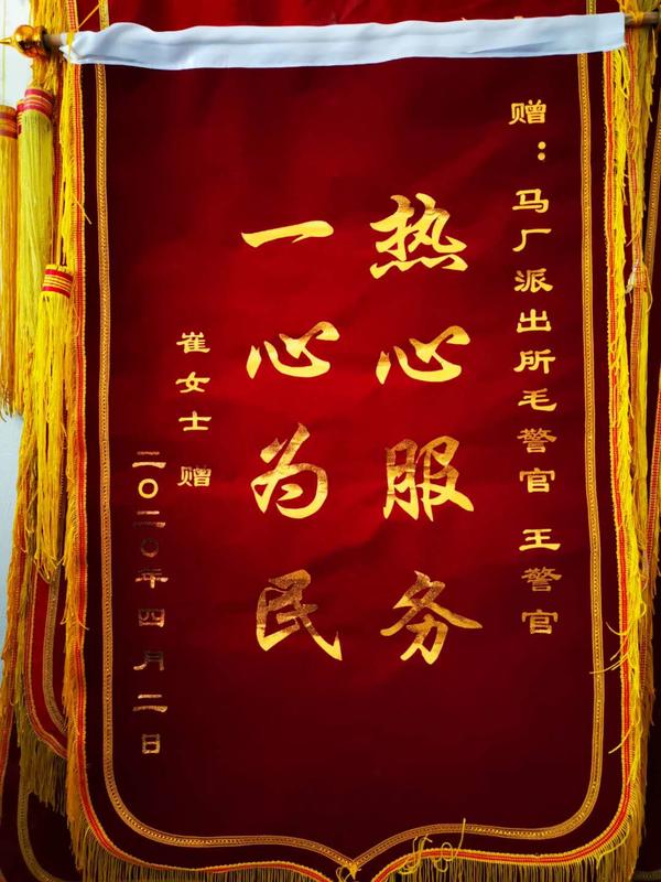 為向民警致謝,崔女士家人多次聯(lián)系馬廠派出所所長(zhǎng)毛衛(wèi)庚說要表示感謝,都被婉言謝絕了。近日,已身在鄭州打工的崔女士每次想到那晚民警們對(duì)她們的幫助都心存感激,于是她就手寫了一封感謝信,并制作了一面錦旗,從鄭州郵寄到家里,讓親戚幫忙送到馬廠派出所以示感謝。