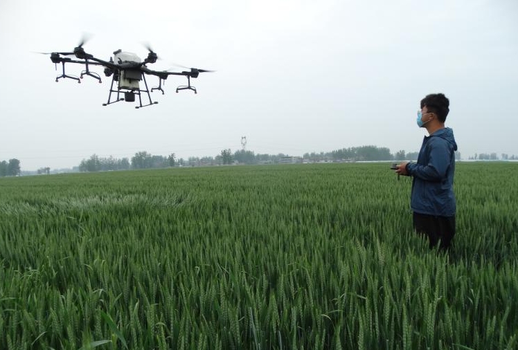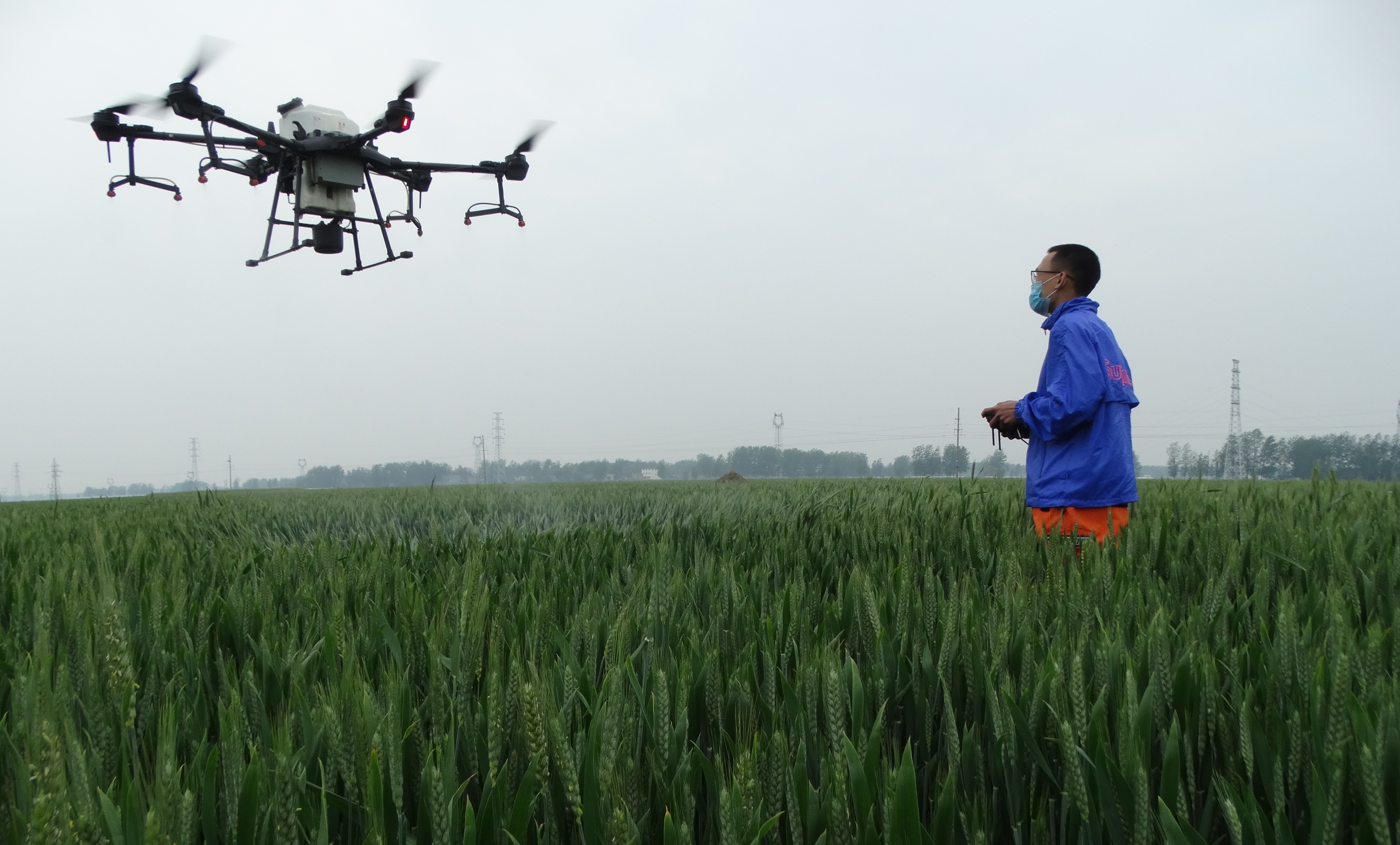 4月18日,沈丘縣周營鎮(zhèn)王寨村小麥高產(chǎn)示范基地,飛防技術(shù)人員在操作無人機(jī)進(jìn)行“一噴多防”作業(yè),噴施“防治病蟲害+強(qiáng)筋壯骨增產(chǎn)營養(yǎng)液”套餐。