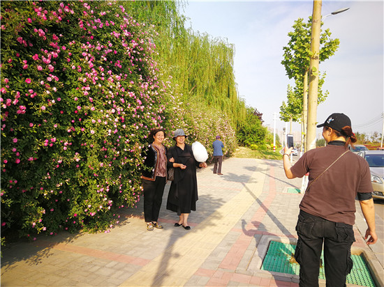 4月23日,市民從繁花滿枝狀如“瀑布”的刺玫花下走過。市體育館西南角的刺玫花正在熱烈綻放,團(tuán)團(tuán)簇簇綴滿枝頭,遠(yuǎn)遠(yuǎn)望去,宛如彩色的“瀑布”一瀉而下。不少市民在花墻前拍照、玩耍,成為市民們“打卡”地。