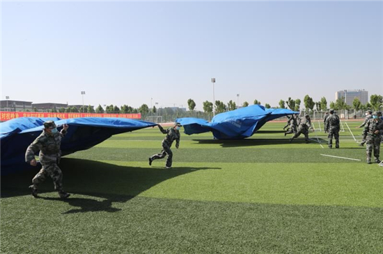 活動現場,八一軍旗、民兵隊旗迎風飄揚。上午9時許,全體起立,現場奏響雄渾的《中國人民解放軍進行曲》。接著,政委郭立君宣讀了民兵干部任職命令,應急班長帶領全體民兵進行了宣誓,新入隊民兵進行了表態(tài)發(fā)言。應急指揮所開設、隊列表演、警棍盾牌操匯報、快速控火救人、戰(zhàn)場急救……一個個精彩的匯報,贏得現場掌聲陣陣。