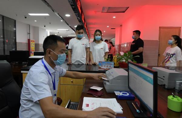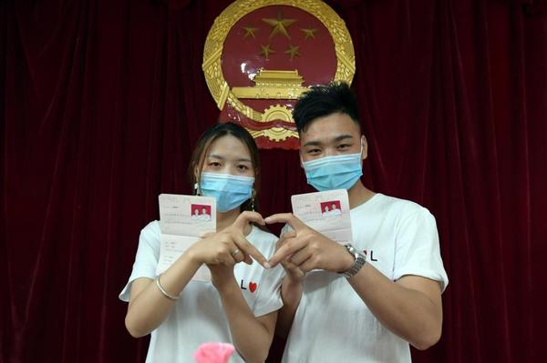 “你就是因為疫情防控推遲婚禮的那個警察吧!”5月20日上午,在鹿邑縣民政局婚姻登記大廳,工作人員看了身份證件后立即認出了他們,專門為他們開通了“綠色通道”;同事們一起在執(zhí)勤的崗?fù)げ贾昧讼矚庋笱蟮摹霸苹槎Y”場地,與他們一起分享幸福的喜悅。