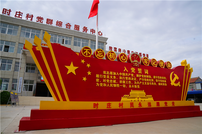 在時莊村黨群綜合服務中心,黨支部書記時興榮說,要想搞好鄉(xiāng)村振興,就要抓好基層黨組織這個“主心骨”,“鄉(xiāng)村能否振興,最關鍵的就是有沒有一個過硬的黨支部?!蹦壳埃瑫r莊村正以統(tǒng)籌推進文明村、平安村、衛(wèi)生村、產業(yè)富民村、美麗宜居村、黨建示范村“六村共建”為重要抓手,堅持以基層黨建示范引領,吹響了“六村共建”的號角。