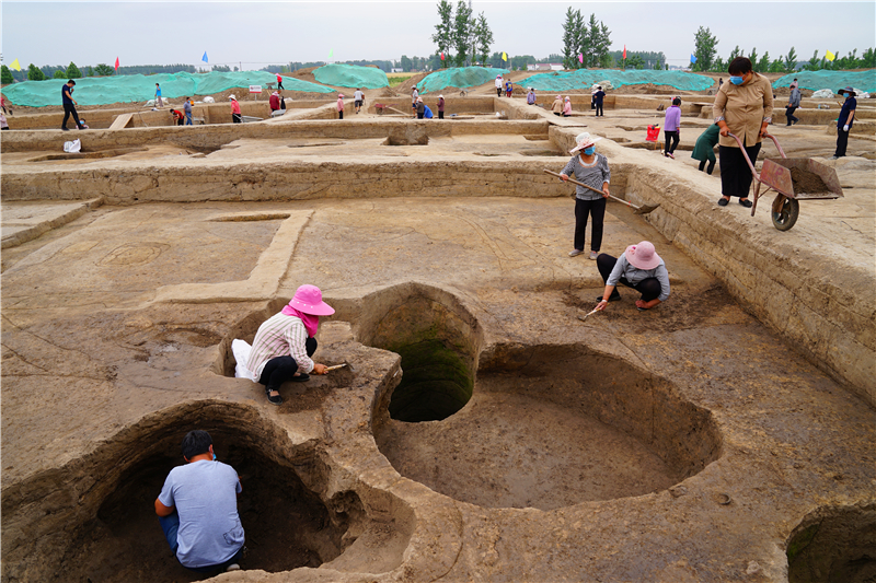 大家首先來到時莊遺址發(fā)掘現場。該遺址屬于龍山文化遺存,就現有發(fā)掘情況看,遺址規(guī)模宏大、結構獨特,在全國范圍也屬罕見,是近年來我國考古的重要發(fā)現。