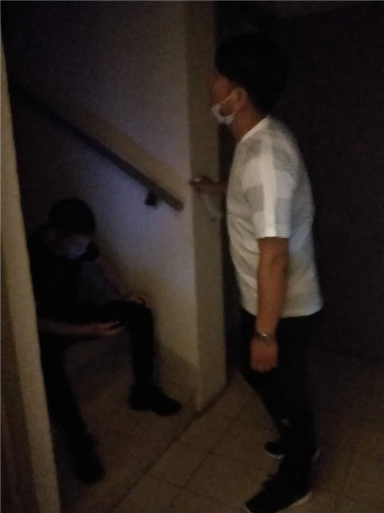 按照事先摸排到的信息,抓捕組民警終于在南京市江寧區(qū)一小區(qū)內找到了嫌疑人的居住地,而嫌疑人卻不在屋內。于是,民警們便在嫌疑人家門“守株待兔”,群里發(fā)來幾張民警坐在樓梯口蹲守照片。等待是漫長的,一直等到晚上10時許,嫌疑人始終沒有出現(xiàn)。民警通過嫌疑人門把手上幾天前的一張廣告單頁判斷,嫌疑人很有可能已經不在此居住,便撤離了蹲守點。