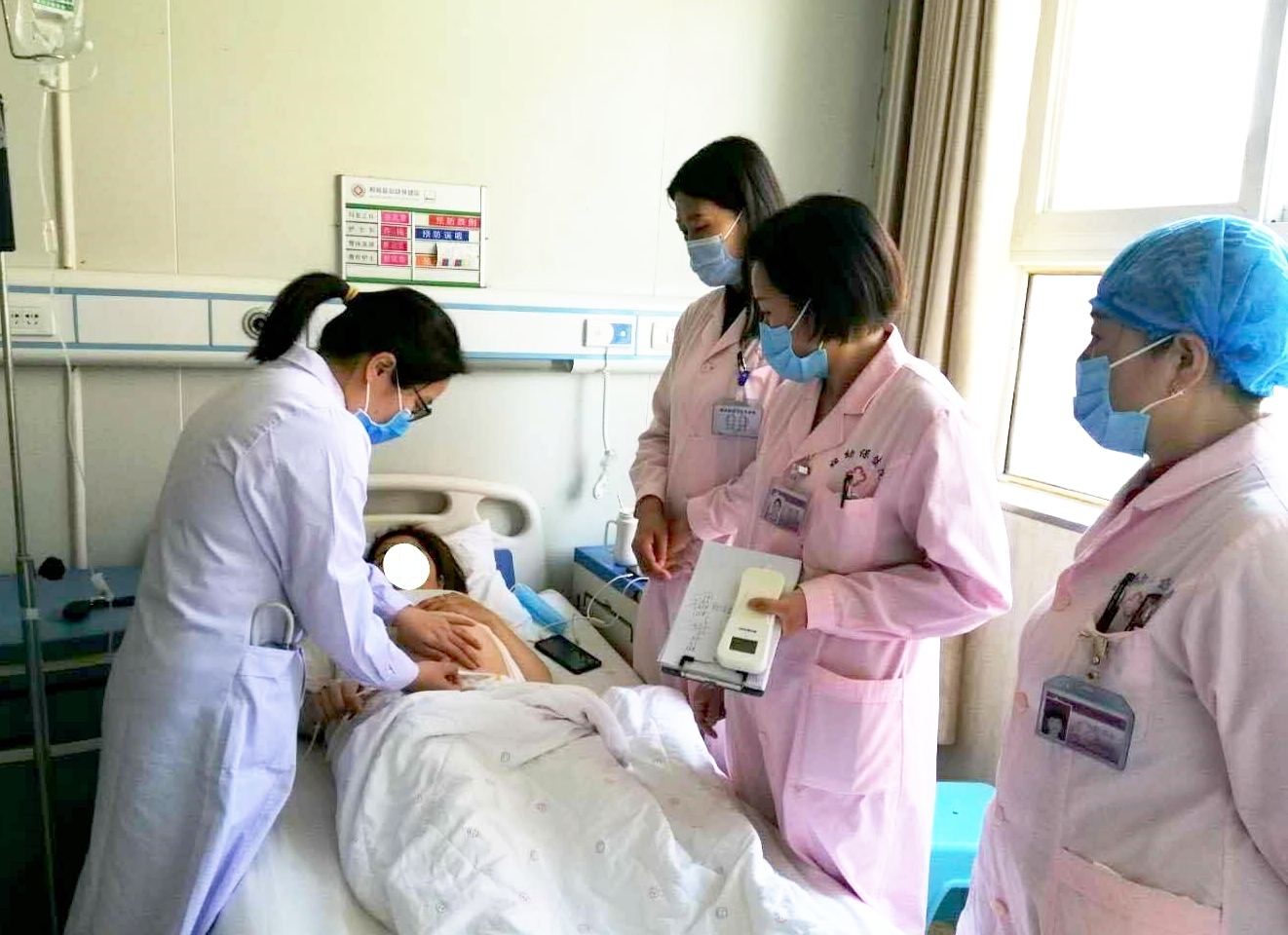 在鄲城縣婦幼保健院副院長李惠娟陪同下,王麗平帶領(lǐng)婦產(chǎn)科醫(yī)師查房,檢查患者切口愈合情況,指導(dǎo)母乳喂養(yǎng)和術(shù)后注意事項(xiàng)等;給全體婦產(chǎn)科醫(yī)護(hù)人員講解《妊娠期糖尿病管理》,詳細(xì)的闡述了妊娠期糖尿病的發(fā)病機(jī)制、臨床癥狀、診斷、治療和飲食指導(dǎo)等;在婦產(chǎn)科術(shù)后監(jiān)護(hù)室,搶救一產(chǎn)后出血病人,幫病人按摩子宮、指導(dǎo)搶救,讓患者很快轉(zhuǎn)危為安。