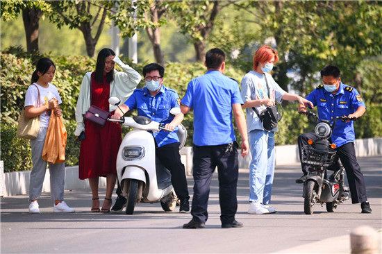 一位城管工作人員告訴記者,嚴(yán)查電動(dòng)車逆行,扣車罰款不是目的,關(guān)健是告誡電動(dòng)車騎行者要養(yǎng)成遵守交通規(guī)則的好習(xí)慣,共同做文明城市的使者。記者 梁照曾 攝