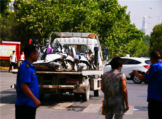 從今天開(kāi)始,周口中心城區(qū)創(chuàng)衛(wèi)按下"嚴(yán)管健”,其中由城管部門嚴(yán)查電動(dòng)車逆行、車輛亂停亂放,是規(guī)范城市管理重要一項(xiàng),逆行者將被暫扣電動(dòng)車,并接受教育和處罰。6月1曰上午,記者在周口大道和慶豐街交叉口看到,不少電動(dòng)車騎行者不按規(guī)定行駛,逆行中被查,暫扣車輛被統(tǒng)一拉走,逆行者將接受和處罰。