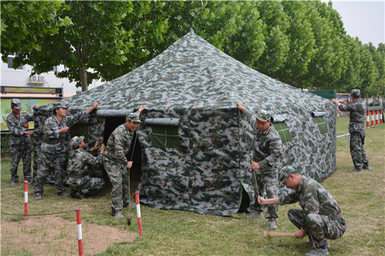在這些民兵當(dāng)中,擔(dān)負(fù)醫(yī)療救護(hù)的綜合勤務(wù)排更是不簡(jiǎn)單。他們是來(lái)自周口長(zhǎng)城醫(yī)院的醫(yī)護(hù)人員,在今年的抗疫戰(zhàn)中,他們充分發(fā)揮基層黨員民兵作用,無(wú)論白天黑夜,冒著雨雪嚴(yán)寒,在抗疫一線的卡點(diǎn)上都留下了他們迷彩身影。趙軍濤是來(lái)該醫(yī)院的醫(yī)護(hù)人員,同時(shí)也是一名退伍老兵,他說(shuō),新時(shí)代的強(qiáng)軍戰(zhàn)歌已經(jīng)奏響,要以此次集訓(xùn)為契機(jī),不斷強(qiáng)化練兵備戰(zhàn)的緊迫意識(shí)、危機(jī)意識(shí),以飽滿的政治熱情投入到緊張的訓(xùn)練中,用優(yōu)異成績(jī)?yōu)榇▍R區(qū)的后備力量建設(shè)增光添彩。