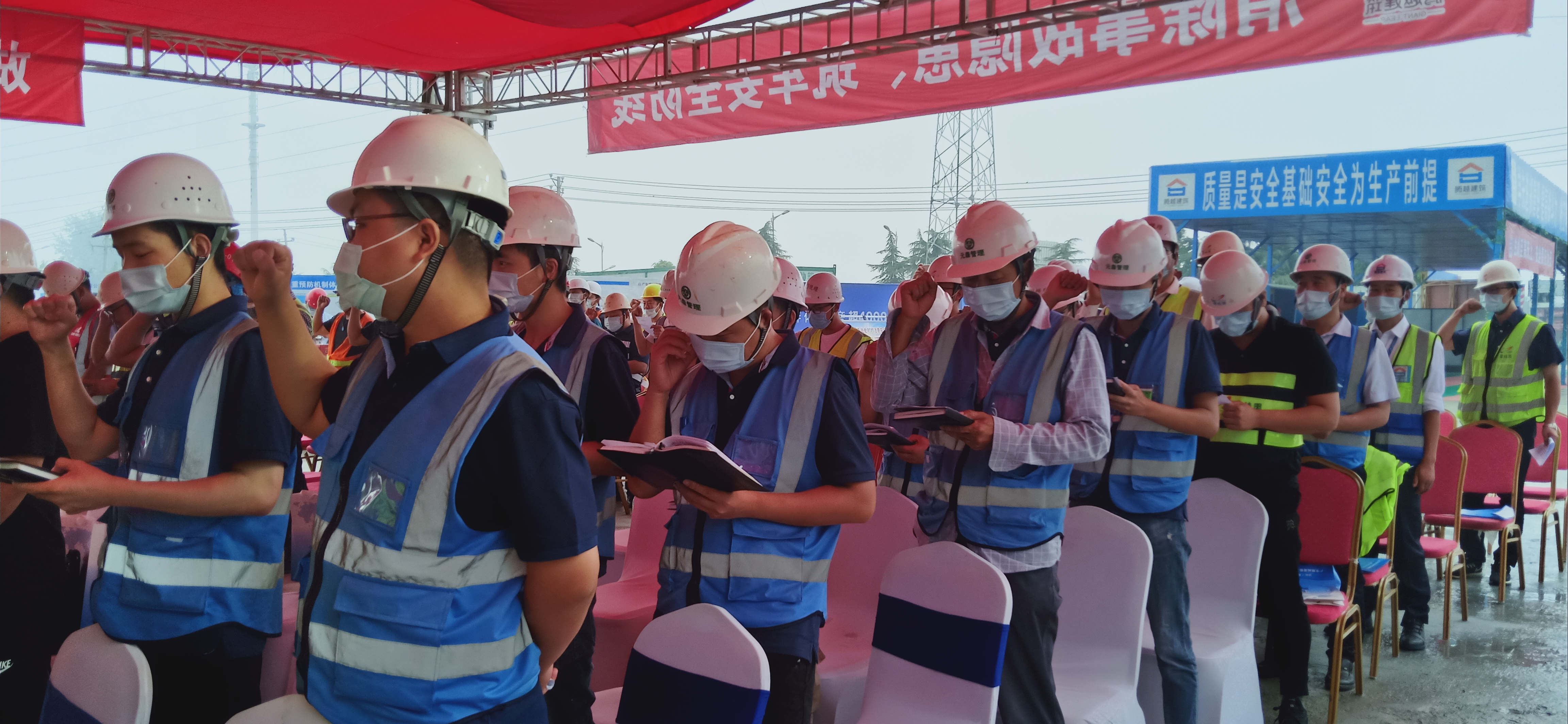 啟動儀式上,項目方就如何做好“安全生產月”活動和加強建筑施工場地的安全防范措施進了安排部署,并帶領施工人員現場進行安全宣誓,全面提高員工安全意識。