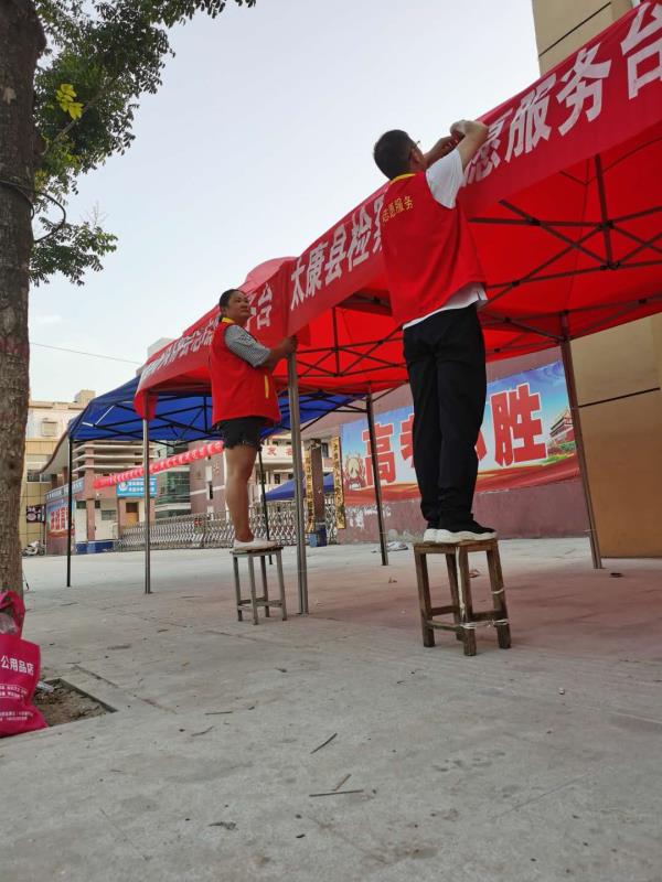 6日下午3時(shí)許,鄭雪艷和王作宇二人被安排到太康縣華夏外國(guó)語高考考點(diǎn)負(fù)責(zé)為考生和家長(zhǎng)搭建11個(gè)茶水棚?!跋挛?點(diǎn)正是一天中最熱的時(shí)候,考點(diǎn)附近也沒有樹蔭。”太康縣網(wǎng)信辦副主任高一麟回憶說,要在天黑之前搭建好11個(gè)茶水棚,對(duì)于鄭雪艷和王作宇兩人來說并非易事。