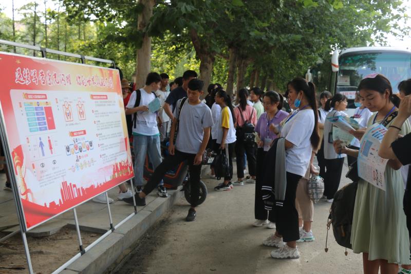 在該縣各標準化高考考點征兵宣傳現(xiàn)場,人頭攢動、熱鬧非凡?!昂媚袃?,來當兵”大紅條幅和“把忠心獻給祖國,把青春獻給軍營”“參軍報國盡義務,熱血青年競風采”的大型宣傳牌格外引人注目,內(nèi)容豐富的征兵宣傳展板一字排開,《征兵宣傳手冊》《大學新生應征入伍宣傳單》《征兵政策宣傳解讀手冊》等征兵宣傳資料擺放在咨詢臺上一目了然,吸引了眾多的考生和家長駐足觀看,圍著咨詢臺詢問有關征兵事宜。