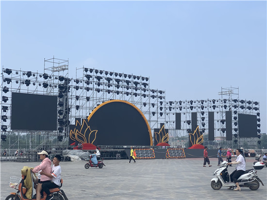 淮陽荷花節(jié)開幕式舞臺(tái)在太昊陵廣場廣場造型完工。據(jù)悉,2020年7月10日晚8點(diǎn)在此開幕,同時(shí)在舞臺(tái)東側(cè)的龍湖上將上演全息水幕燈光秀。