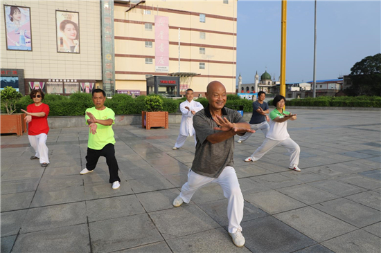 冬練三九,夏練三伏,練出一身真功夫。投伏第一天,周口市武術(shù)協(xié)會會長張志民帶領(lǐng)會員在五一文化廣場習(xí)練新編和氏26式太極拳。記者 王凱 攝