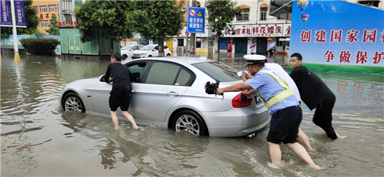 大雨滂沱,交通擁堵。7月22日,針對市區(qū)降大雨且部分路段出現(xiàn)嚴(yán)重積水的情況,交警及時啟動惡劣天氣應(yīng)急預(yù)案,迅速投入到工作中。