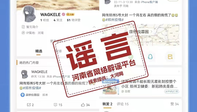 ?12月1日晚,記者從鄭州市疫情防控指揮部獲悉,網(wǎng)傳“12月2號(hào)至8號(hào)鄭州又要封”是謠言。