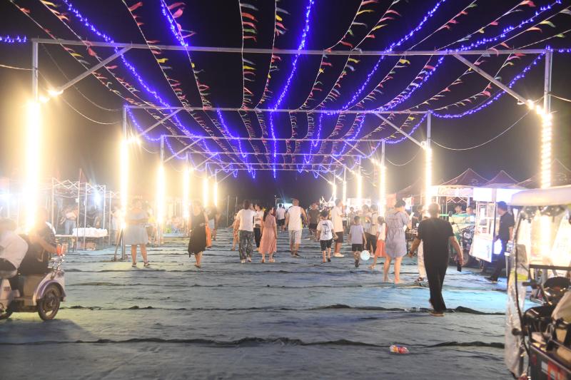 該夜市場地由商水縣水韻章華文商旅項目提供,占地近百畝,設有100多個攤位,經營范圍包括吃喝玩樂娛、服裝百貨等,每天晚上6點多營業(yè),11點收攤,周末客流高峰時游客有3000多人,其中不少來自周口中心城區(qū)。
