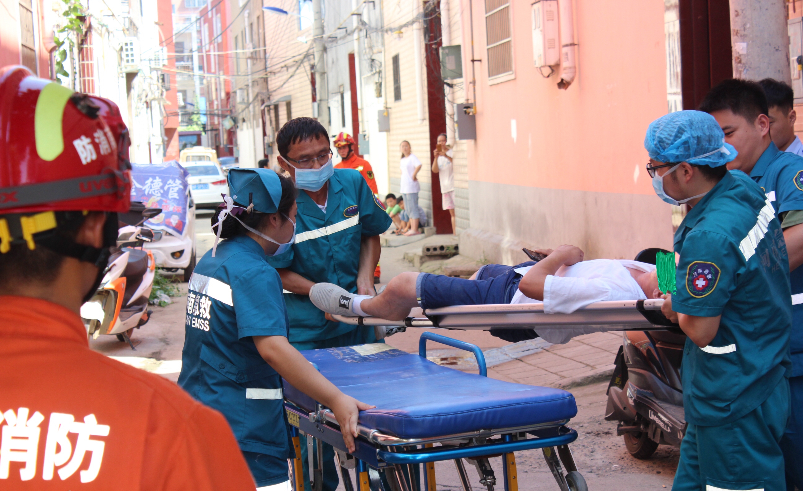 接到報警后,市公安局七一路分局民警、消防官兵、急救中心醫(yī)護人員迅速趕到現(xiàn)場。“不要過來,再過來我就跳下去!”該女士在樓頂邊緣嘶吼著,當日天氣比較炎熱,女子隨時都可能因體力不支而墜樓?,F(xiàn)場消防人員立即疏散圍觀人員,由于民房院內(nèi)面積較小,救生氣墊無法充起,給救援工作增加了難度,現(xiàn)場民警與消防隊員及時調(diào)整救援方法,先穩(wěn)住該女子情緒,伺機再將其救下。