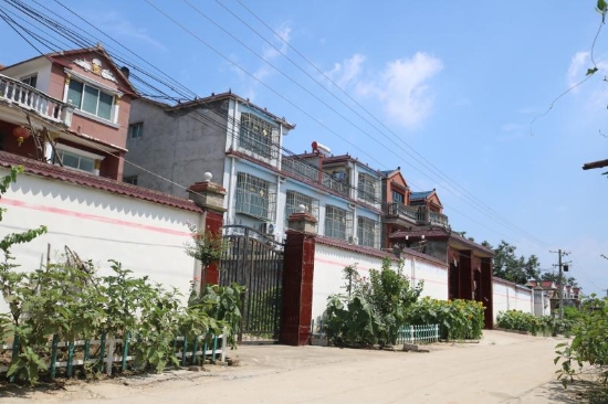 “整治后的坑塘邊綠村成蔭,不時(shí)有小鳥(niǎo)掠過(guò)水面又飛回樹(shù)梢;村頭巷尾、花開(kāi)四季,孩童們?cè)诖逯凶分疰音[,老人們?cè)诖宓郎镶蛔缘玫蒯溽嗌⒉?,歡笑不斷;群眾文化廣場(chǎng)上,村民集聚在這里休閑、娛樂(lè)、健身,成了村里人氣最旺的地方?!绷硪粋€(gè)具有代表性的鄉(xiāng)村振興新版本是馬鋪鎮(zhèn)最南端軍吳行政村,這個(gè)村子位于惠濟(jì)河北岸,207省道橫穿南北,轄軍吳,高口,高莊,吳樓,許莊,王莊,豆腐營(yíng)七個(gè)自然村,耕地面積4288畝,總?cè)丝跀?shù)4236人。近年來(lái),這個(gè)村子除大力發(fā)展中藥材、蔬菜等經(jīng)濟(jì)作物種植外,還以“二四四”工程和“雙強(qiáng)”村創(chuàng)建為抓手,開(kāi)展“美麗鄉(xiāng)村”行動(dòng),打造美麗庭院,對(duì)村中主次道路進(jìn)行硬化、綠化、美化、亮化,發(fā)展以生態(tài)為底色的宜居宜游農(nóng)旅村落,成為鹿邑縣首批“千萬(wàn)工程”示范村。