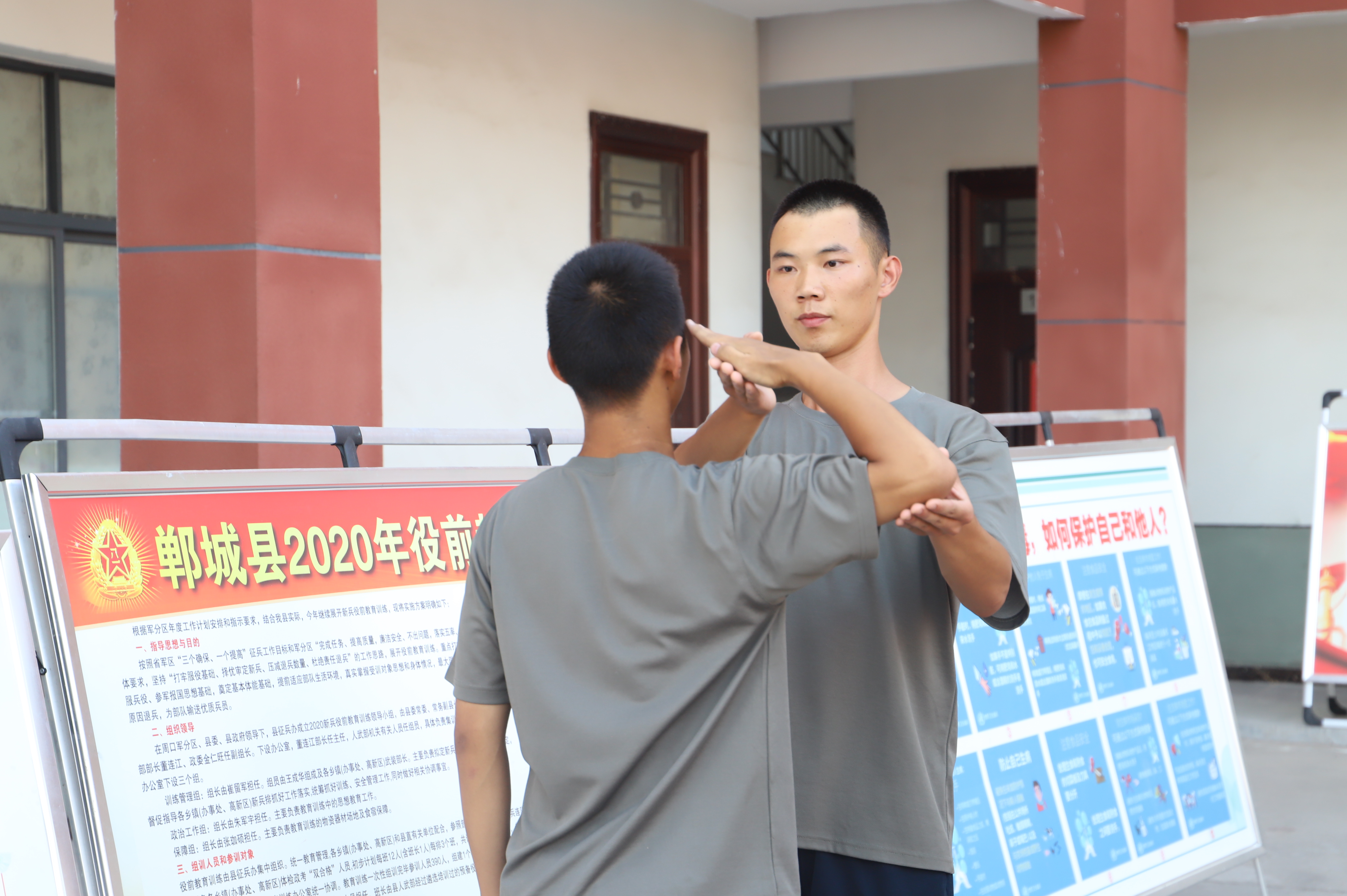 “敬禮,五指并攏,掌心向胸前,迅速抬起,中指至太陽穴2厘米處。”“齊步走有5個動作要領(lǐng):身體前傾、出左腳伸右手、挺胸臺頭目視前方、臂稍里合、手臂不彎?!痹谟柧殘錾希_禧辰、張佳浩協(xié)助訓練員反復示范每一個動作要領(lǐng),為預定新兵講軍營的故事,使大家在入伍之前就體驗到了軍營生活,感受到了軍營的溫暖與關(guān)愛。
