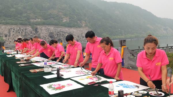 受郭泰森影響,村里不少農(nóng)民也想學(xué)習(xí)畫牡丹,在當(dāng)?shù)卣闹С趾蛶椭?,郭泰森舉辦了牡丹畫免費(fèi)培訓(xùn)班、畫師培訓(xùn)班,參加培訓(xùn)的學(xué)員場(chǎng)場(chǎng)爆滿。如今,平樂(lè)鎮(zhèn)牡丹畫師已發(fā)展到1000余名,形成了包括培訓(xùn)創(chuàng)作、裱畫包裝、推介營(yíng)銷、研學(xué)旅行等相對(duì)完整的產(chǎn)業(yè)鏈,帶動(dòng)相關(guān)從業(yè)人員5000余人。