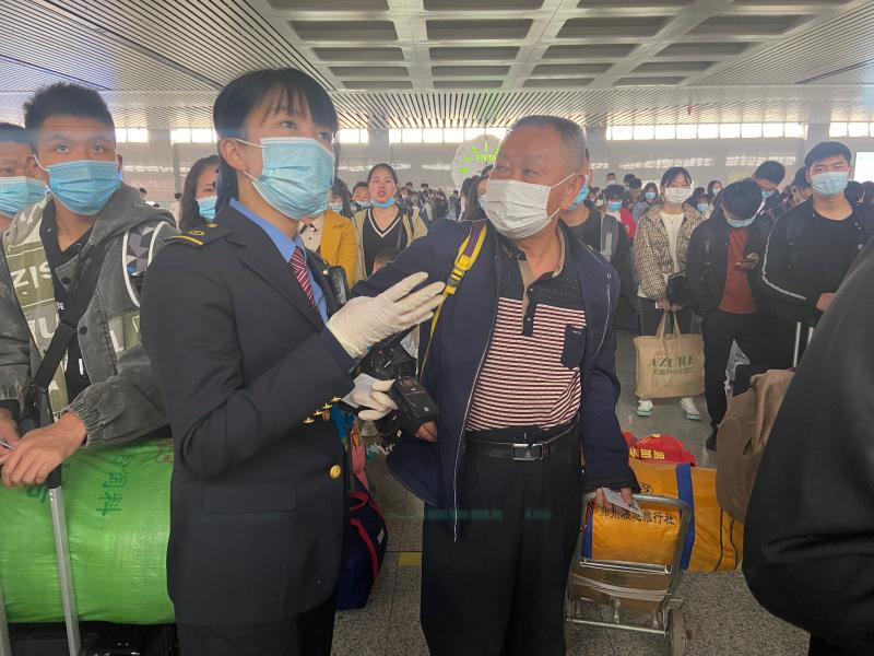 今年30多歲的王琪就是其中一名客運(yùn)值班員。她家在濮陽市,今年6月份從高鐵許昌北站調(diào)到高鐵周口東站工作,她的主要工作是在旅客進(jìn)入候車廳后,引導(dǎo)旅客有序排隊(duì)進(jìn)入站臺,調(diào)配崗位人員,遇到旅客救助等突發(fā)狀況,及時(shí)處置。