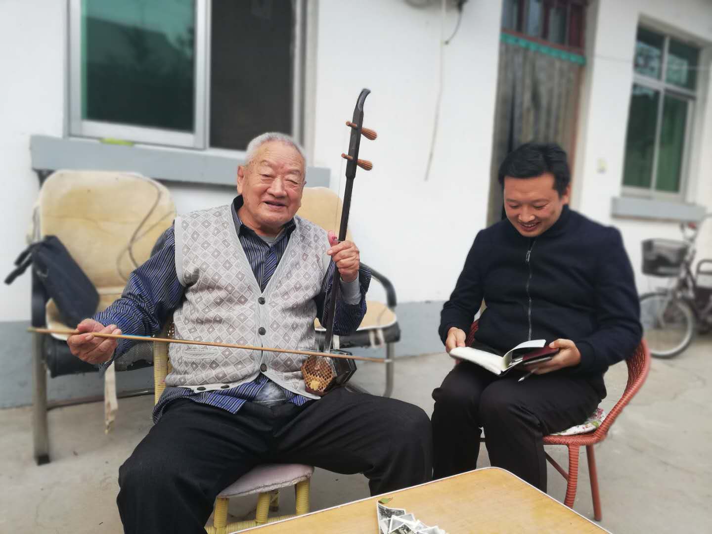 就是在今天,朱德銀在門口廣場(chǎng)游玩時(shí),也會(huì)用攜帶著的聽診器、血壓計(jì)等醫(yī)療器材,只要有人需要,他都會(huì)義不容辭地為群眾義診。