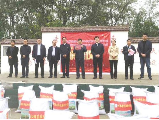 10月13日,周口師范學(xué)院赴定點(diǎn)幫扶的鄲城縣李小樓村舉行2020年扶貧日系列活動(dòng)暨微生物復(fù)合肥捐贈(zèng)儀式,為該村捐贈(zèng)適用于小麥和大棚蔬菜的復(fù)合微生物肥料20噸。周口師范學(xué)院校長(zhǎng)臧振春,副校長(zhǎng)毛健民,鄲城縣委常委、副縣長(zhǎng)劉輝,副縣長(zhǎng)張福麗,周口師范學(xué)院有關(guān)部門(mén)負(fù)責(zé)同志,李小樓村干部群眾100余人參與活動(dòng)。捐贈(zèng)儀式由李樓鄉(xiāng)黨委書(shū)記任勝利主持。