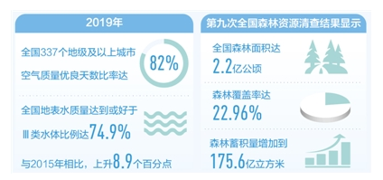 5年砥礪前行,污染防治攻堅(jiān)戰(zhàn)全面推進(jìn)。截至2019年底,“十三五”規(guī)劃綱要確定的生態(tài)環(huán)境領(lǐng)域9項(xiàng)約束性指標(biāo),有8項(xiàng)已提前完成。天藍(lán)水凈地綠的美麗中國正向我們走來。