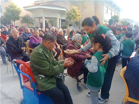 來到周口市老年護(hù)理院之后,學(xué)生們在老師的有序組織和家長們大手牽小手的幫助下,給那里的爺爺奶奶們送去了節(jié)日的祝福。祝愿爺爺奶奶身體健康,生活快樂!同時為爺爺奶奶表演了自編自導(dǎo)的節(jié)目。孩子們的有趣表演博得老人們開心開懷,并給以陣陣掌聲。