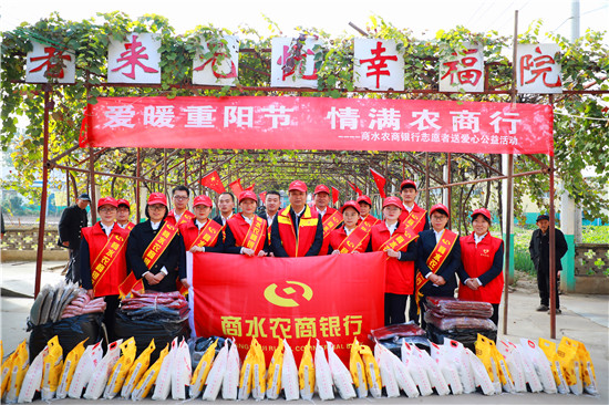 這是商水農(nóng)商銀行紀(jì)委書記、監(jiān)事長(zhǎng)張宇帶領(lǐng)該行志愿者服務(wù)隊(duì)正在開展“愛暖重陽節(jié) 情滿農(nóng)商行”走訪慰問活動(dòng)。