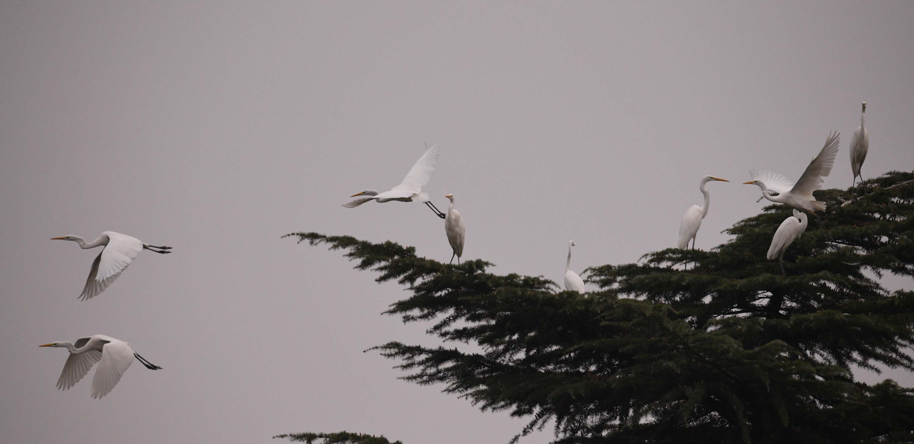 近日,市區(qū)漢陽路沙潁河大閘的中心島林間,飛來近百只白鷺。這里幽靜舒適的環(huán)境和河里豐富的魚蝦,滿足它們棲息和生活。它們面對行人,不驚不詫,時而盤旋嬉戲,時而捉魚果腹。人鳥和諧相處,構成美麗的生態(tài)風情。②9