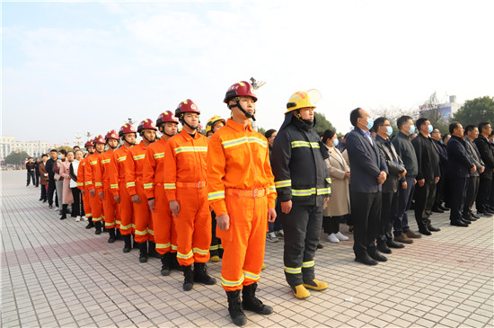 11月11日,鄲城縣在世紀廣場舉行2020年消防宣傳月活動啟動儀式,目的是進一步提高全民消防安全意識,促使“關(guān)注消防 生命至上”的主題深入人心,廣泛發(fā)動社會各界關(guān)注消防、參與消防,營造良好的宣傳氛圍,預防和減少火災事故發(fā)生,確保人民群眾生命財產(chǎn)安全??h長李全林出席會議并宣布消防宣傳月活動啟動,縣委常委、常務副縣長胡友濤主持會議,縣領(lǐng)導謝超、王彪、陳鳳祥、李素梅及縣公安局政委趙紅建參加會議。